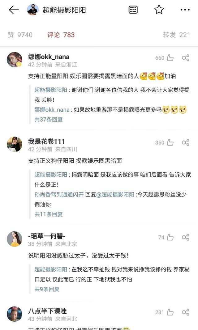 另外还有网友支持阳阳揭露娱乐圈黑暗面。