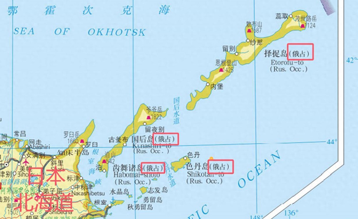 打开日本地图,看到北海道附近的北方四岛标注为“俄占”,而邻近的库页岛却未如此标注。这究竟是怎么回事?