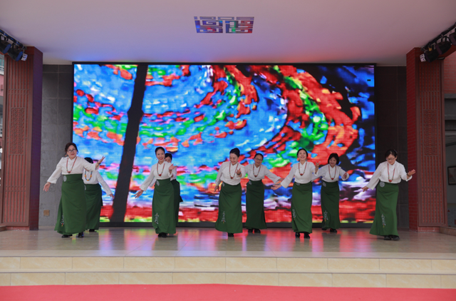 柒舞荟文艺工作室带来的锅庄舞《牧羊姑娘》充满了浓郁的民族风情。舞者们身着鲜艳的藏族服饰,手拉手围成圆圈,随着欢快的节奏尽情舞蹈。他们的脸上洋溢着幸福的笑容,舞姿热情奔放,仿佛将观众带入了高原牧区的欢乐景象之中。现场观众也被这热烈的氛围所感染,纷纷跟着节奏鼓掌、欢呼,将活动推向了一个小高潮。