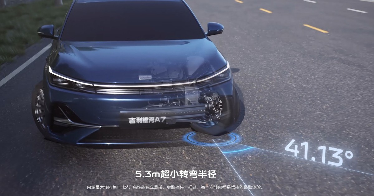 城市老小区的窄巷掉头、拥挤停车场挪车,也是考验底盘的常见场景。银河A7凭借5.3米的最小转弯半径,轻松解决了“大车难调头”的痛点,在2.5米宽的窄巷里,仅需一次打满方向就能完成掉头;停车场侧方停车时,也无需反复调整方向,新手也能快速入库。这种灵活度,彻底打破了“车身长=操控笨”的固有认知。