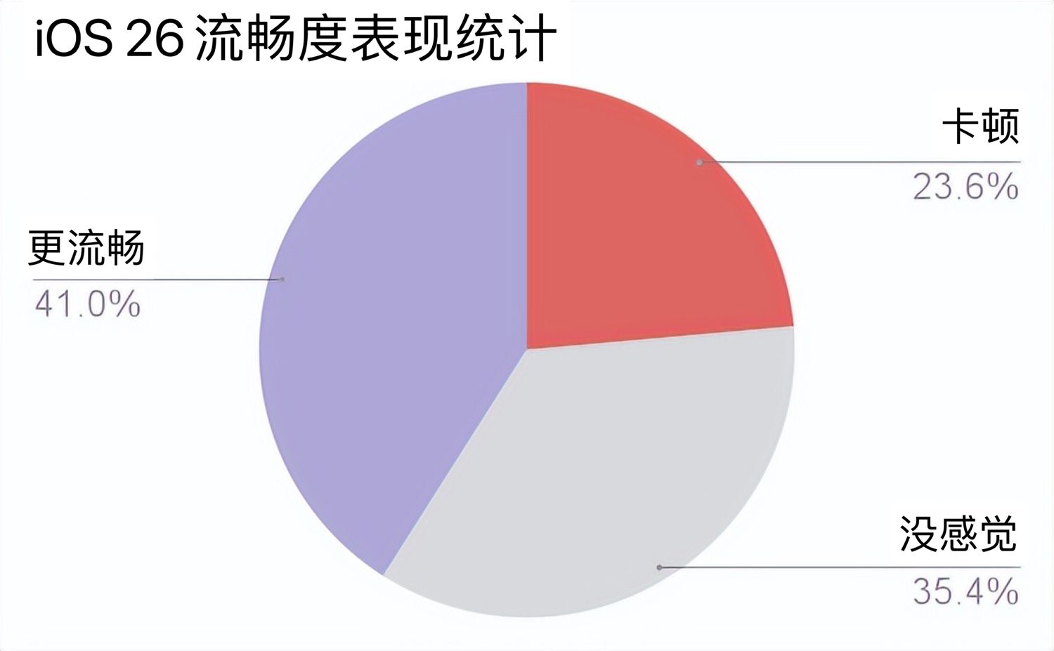 有41%的用户在升级iOS 26正式版后,反馈更加顺畅了,仅23.6%的用户反馈比之前卡顿了,有35.4%的用户觉得没有什么变化。