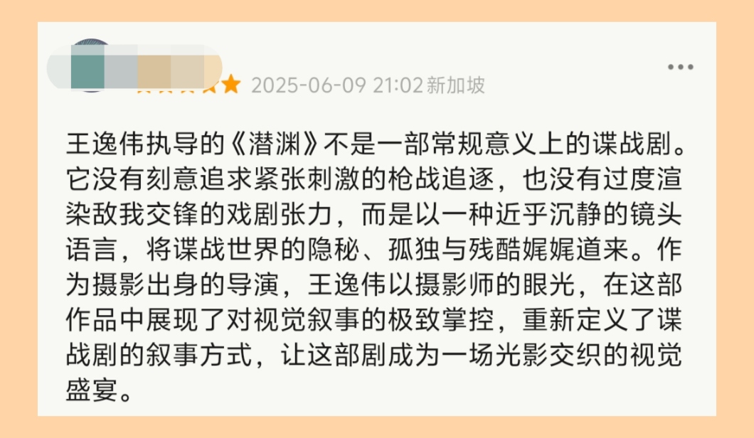 《潜渊》不是一部常规意义上的谍战剧,它没有刻意追求紧张刺激的枪战追逐,也没有过度渲染敌我交锋的戏剧张力。