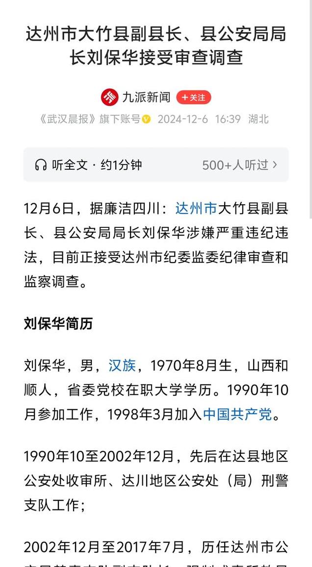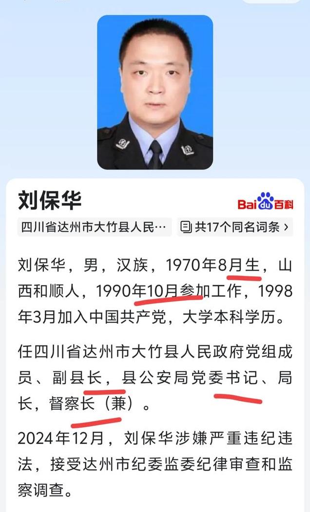 又一位警察内鬼现形,这是一位级别是副处级别的警察内鬼。12月6日,周五再打虎,达州市纪委通报,达州市大竹县副县长、县公安局局长刘保华涉嫌严重违纪违法,目前接受纪委调查。刘保华作为大竹县的公安局局长,位高权重,同时也是副县长,在县里妥妥的实权人物,其中警察局里面看似正义凛然,然而,自己却是警局最大的腐败分子,真是令人讽刺啊。