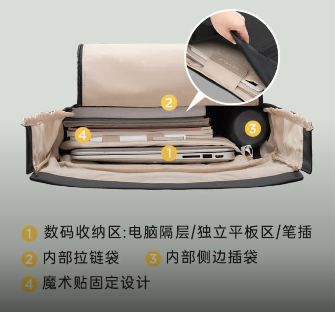 日常上班我收纳的东西也比较多。因为它有非常棒的精细分区。和卷顶大开口设计。让我的收纳和取物更加便捷。