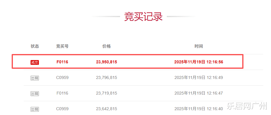 时间回到2025年11月19日,保利天悦这套建面约199㎡的法拍房吸引了3人报名,经历高达93轮竞价后,总价被抬至2395万元,单价12万元/㎡。