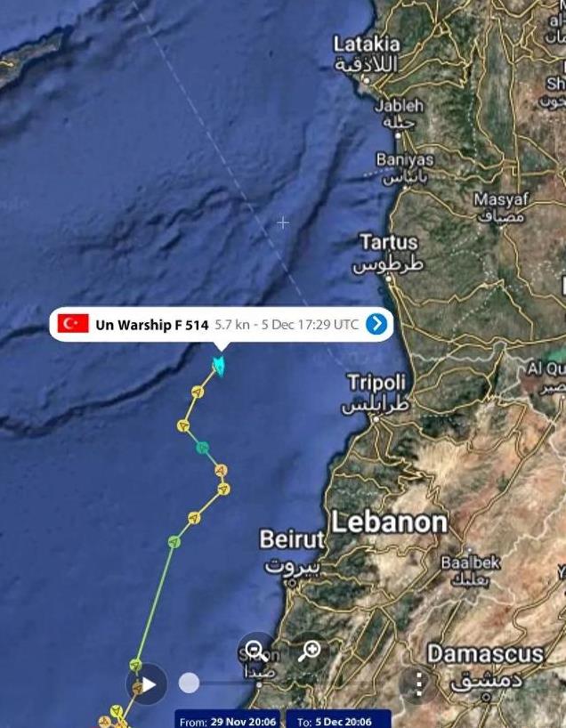 土耳其这艘护卫舰原本是联黎部队的成员,用来监视黎巴嫩南部,阻止外界从海上向真主党提供潜在的补给。但是这次不顾本身任务,一路向北监视俄军基地,可见土耳其的胃口确实不小。