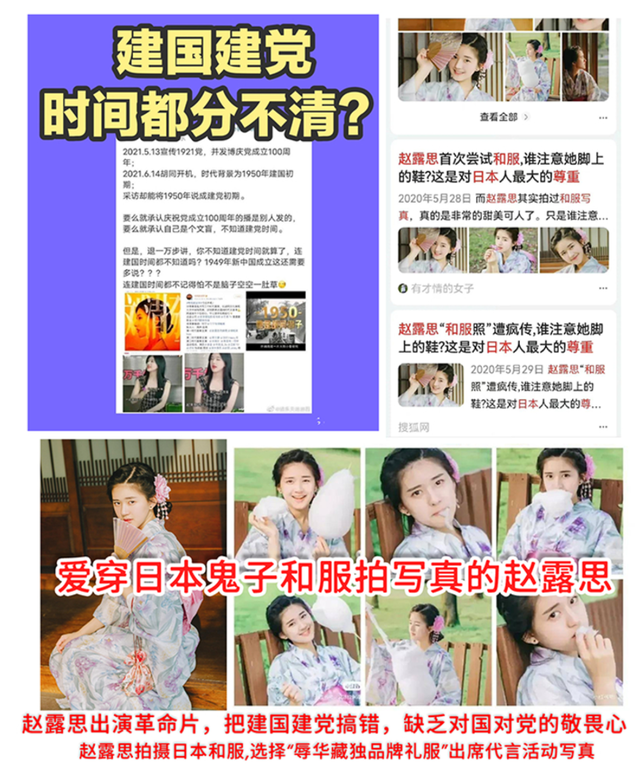 除此外赵露思还辱华品牌参加活动进行日本和服写真,作为公众人物这点实属不应该啊。