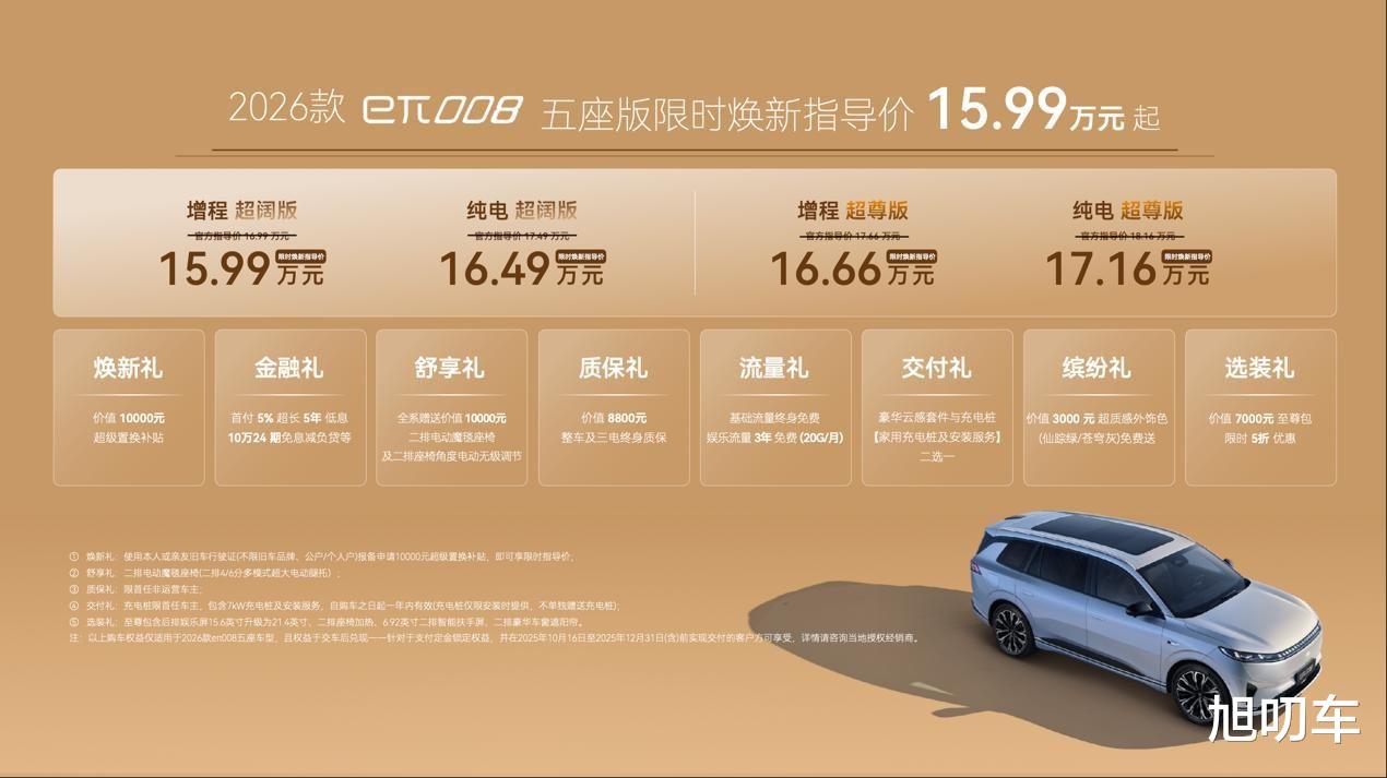 央企严选品质硬,家庭用车更放心。2026款eπ008五座版提供增程、纯电两种动力,超阔版、超尊版两种配置,共计四款产品,限时焕新指导价15.99-17.16万元,还可享受包含金融礼、质保礼、交付礼、选装礼、流量礼等多重上市权益。