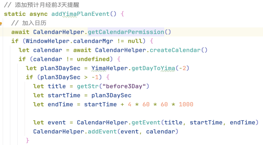 肖世荣还分享了美姨 App 在鸿蒙系统受益的重要核心功能——经期提醒。通常,让开发者经常头疼的云端/本地push消息提醒功能,鸿蒙系统的亮点是支持设置独立日历或与系统日历同步,用户权限请求机制设计高效简洁。允许开发者/用户任意创建不同的日历,既方便归类,也可随意删除,不影响用户系统的普通日历。