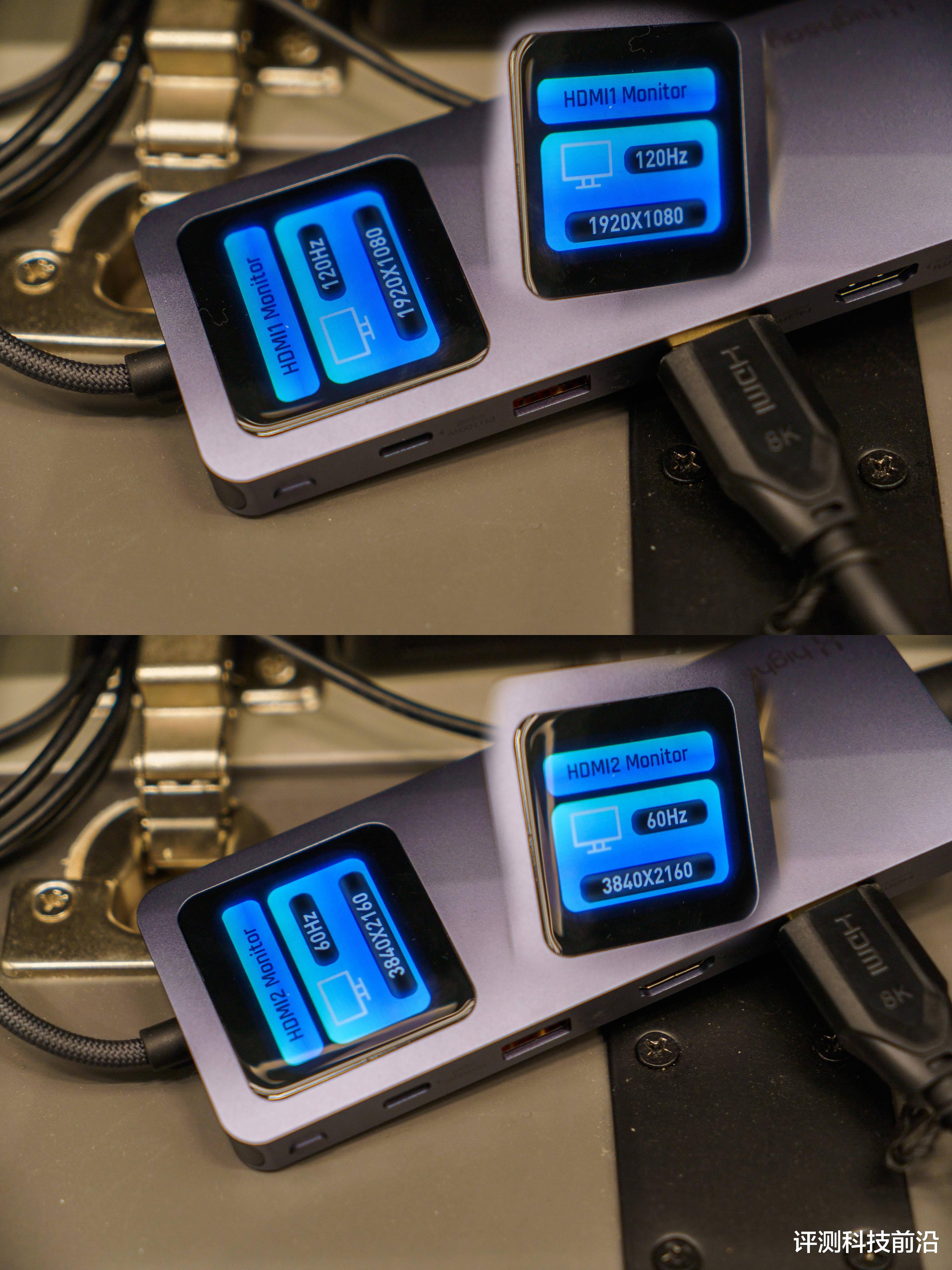▼HDMI2.0接口最高支持4K60Hz的画面,HDMI2.1接口最高支持8K30Hz的画面,实测也支持1080P120Hz、10bit色深、HDR10的画面扩展输出,用来打游戏、剪辑、调色完全没有问题