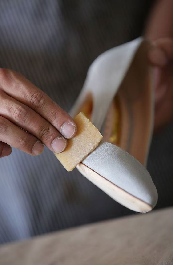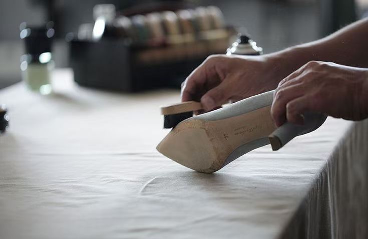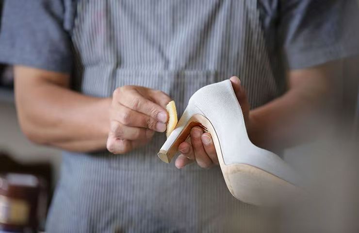 修复师的工作台,是一方充满专业与专注的小天地。毛刷、磨砂块、专用清洁剂、鞋楦等工具整齐排列,它们是修复师手中的“魔法道具”,更是唤醒麂皮质感的关键所在。面对一双需要修复的麂皮高跟鞋,修复师的第一步,是如医者问诊般的细致检查。从鞋面的磨损程度、污渍残留,到鞋跟的稳固性、鞋楦的贴合度,每一处细节都逃不过他们锐利的双眼。