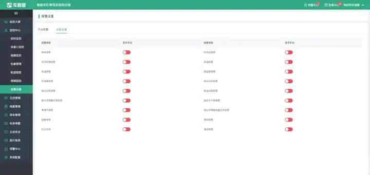 车智管的报警设置主要分为平台报警和设备报警两种。