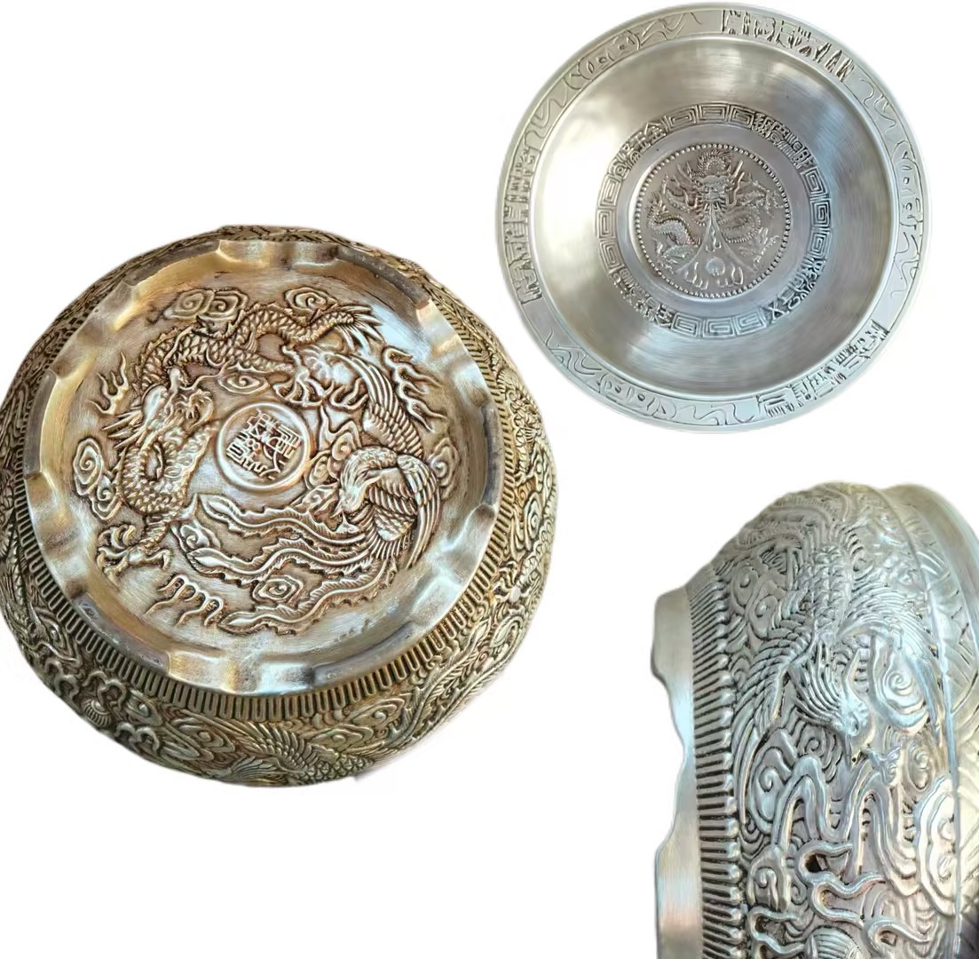 就像古人在盆里放元宝,不是 “迷信”,是 “给自己一个盼头”;如今你把它放在书房,看见龙凤的生动、银辉的温润,会觉得 “生活有奔头,日子有念想”—— 这就是器物的 “情感价值”:它是 “看得见的祝福”。