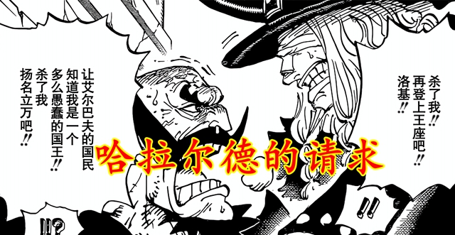 但14年前惨案的真相,其实是被伊姆控制的哈拉尔德,在城堡中屠戮士兵,亚鲁鲁、贾巴、红发和洛基联手阻止。最终,洛基在父亲哈拉尔德的请求下,吞下传说恶魔果实,含着眼泪,以霸王色加雷霆之力,杀死了哈拉尔德。
