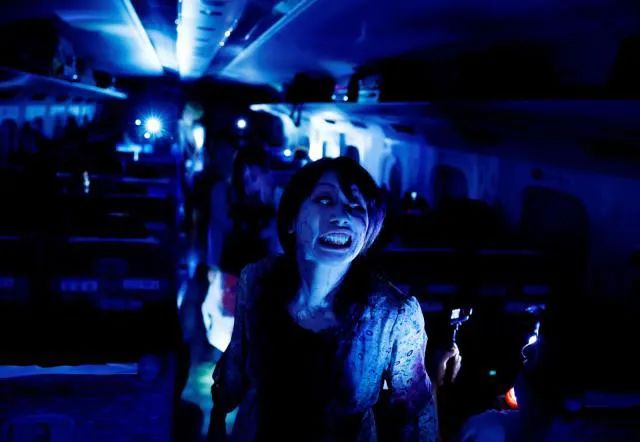 这个万圣节限定的丧尸列车“希望(Nozomi)435”,一共由20多名演员打扮成的角色突然变成丧尸,再于车内袭击其他乘客,让车上40多名前来体验的乘客十分惊叹。。