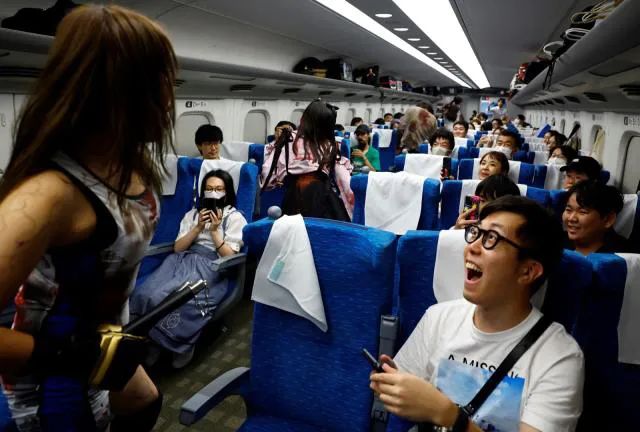 为了应援即将到来的万圣节,日本东京到大阪的子弹新干线列车上,推出“尸速列车”特别企划,有超过20名专业表演者打扮成满身是血的丧尸,在车厢中蹒跚游荡、张牙舞爪、地上爬行,或跳到另一人(表演者)背上撕咬,车厢内乘客无人惊恐,人人拿着手机欢乐拍摄。