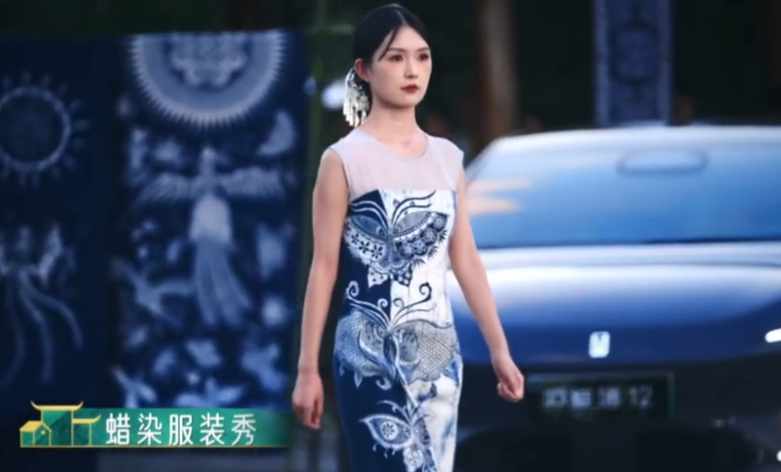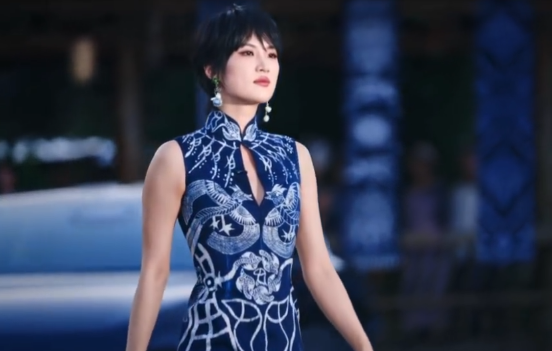 近日,在 “非遗之城宝藏季” 活动中,姚安娜身着蜡染旗袍踏上村 T 舞台,蓝白交织的非遗纹样随步履流动,优雅仪态与千年工艺相融,让蜡染这一古老非遗焕发出鲜活的时尚光彩。