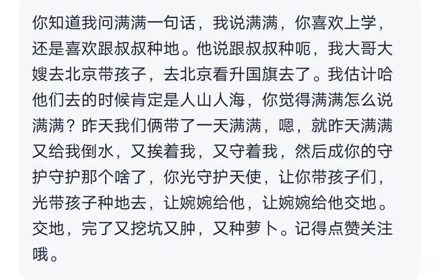 而遇上清帅这个叔叔,满满就是一个“劳动力”,陪着清帅玩了一天泥巴,把劳动节思想贯彻到位,更重要的是,满满宁愿种地都不想去上学,想想都好笑