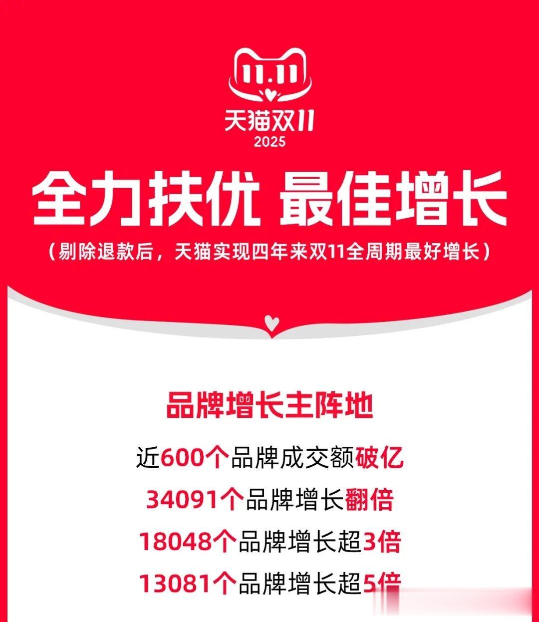 如今,阿里的AI技术正全面渗透到电商、云计算等各个业务线。截至去年10月,约3500个天猫品牌将其线下门店接入即时零售网络。在协同效应下,天猫双11期间,淘宝App实现消费者同比双位数增长,近600个品牌成交破亿,天猫品牌即时零售日均订单环比9月增长198%。