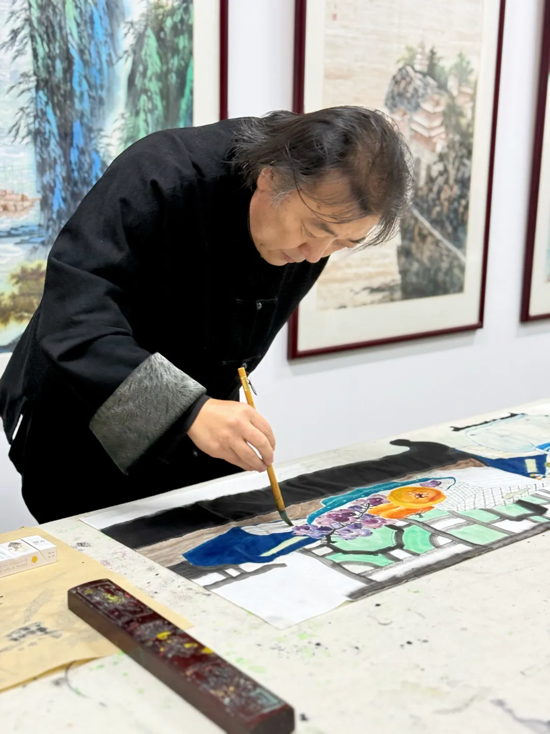 受聘湘潭大学艺术学院客座教授后,程东富更将这份“传承”的责任延伸至教育领域。他既教学生笔墨技法,更讲黄土画派的故事——讲刘文西先生如何深入陕北写生,讲画派画家如何用作品记录时代,让年轻学子明白:“国画不只是纸上的技艺,更是心中的家国;笔墨不只是黑白的交融,更是对文化的担当。”这种“授人以艺,更授人以道”的教学理念,正是他对刘文西先生“培养无愧于时代的艺术人才”期许的践行。