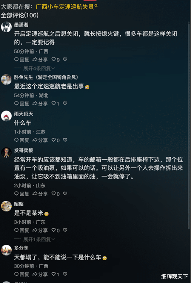 现在开车真的要提心吊胆!定速巡航技术,理论上刹车独立、踩下就解除,汽修师傅都说除非刹车也坏了,否则不可能失控。另一边却是
