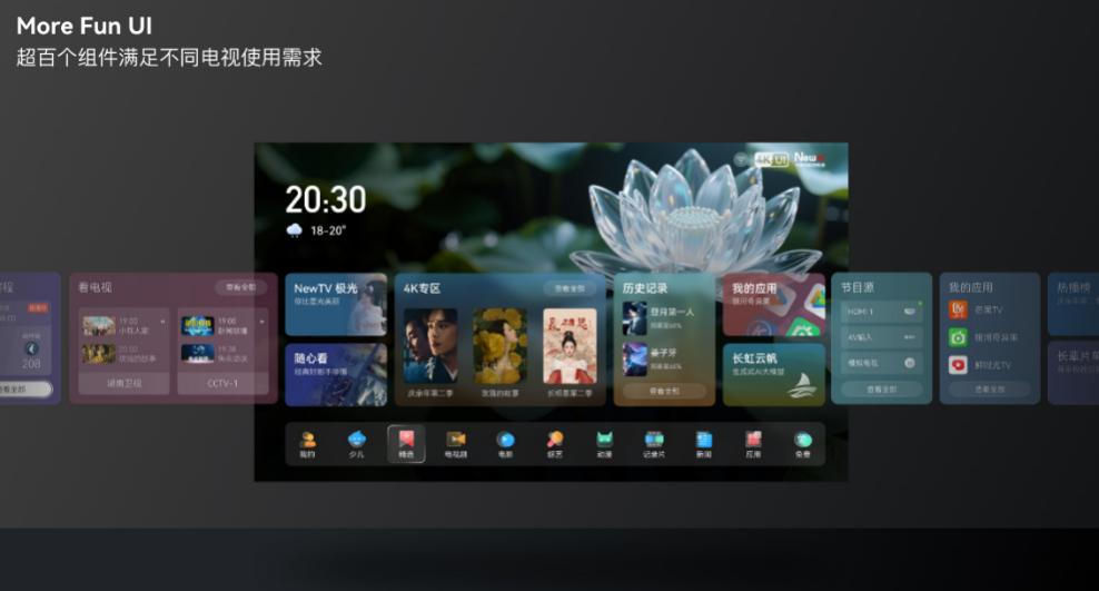 结合AI大模型,打造用户可深度参与的智能桌面。新的虹领金魔方桌面借助AI,让电视带给用户更智能的体验。通过用户使用行为,建立用户角色画像,生成用户专属内容推荐;根据用户使用习惯,AI自动生成适合的桌面卡片和相应布局并推荐给用户。