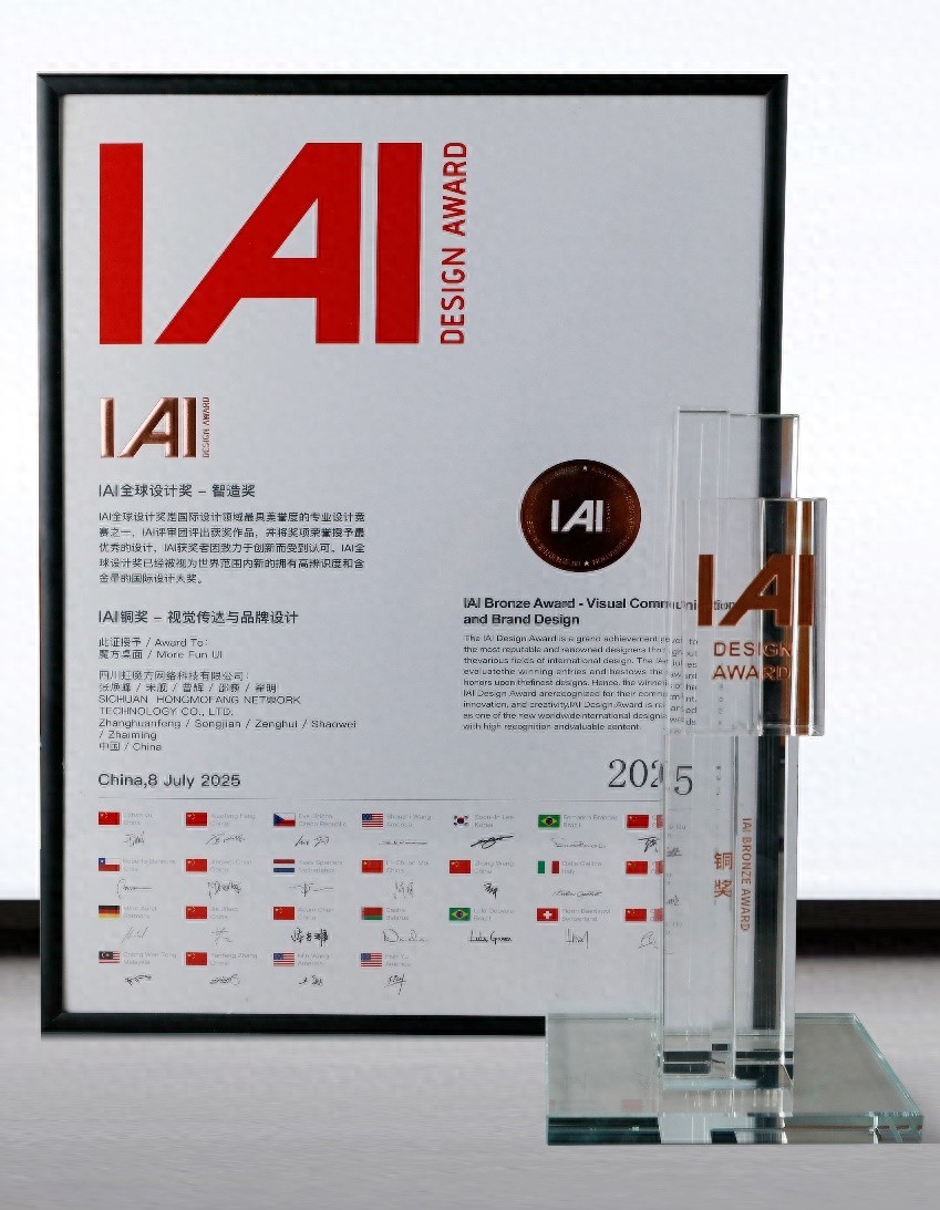 近日,四川虹魔方网络科技有限公司自主研发的“魔方桌面”在全球设计舞台上斩获殊荣——荣获2025年IAI全球设计奖铜奖。该奖项由亚太设计师联盟(APDF)主办,是业内公认的权威性国际设计赛事之一,旨在表彰在用户体验、视觉美学与技术创新等方面具有突出表现的设计作品。
