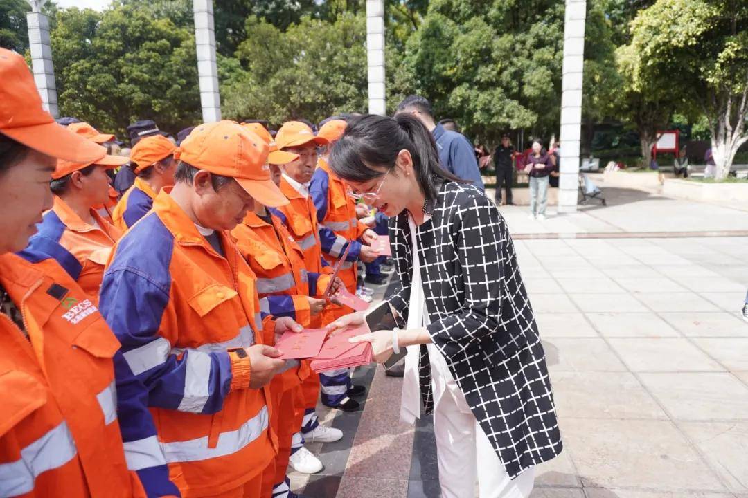 为持续推进工会送温暖活动常态化、常效化开展,切实把县委政府的关怀和工会组织的温暖及时送到职工群众心坎上,9月29日下午,宜良县总工会开展“工会温暖进万家”中秋国庆走访慰问一线环卫工人活动,向长期坚守岗位、守护城市环境的100名一线环卫工人送上节日的关怀与问候。县人大常委会常务副主任、县总工会党组书记、主席孙自林,副县长李平出席慰问活动。