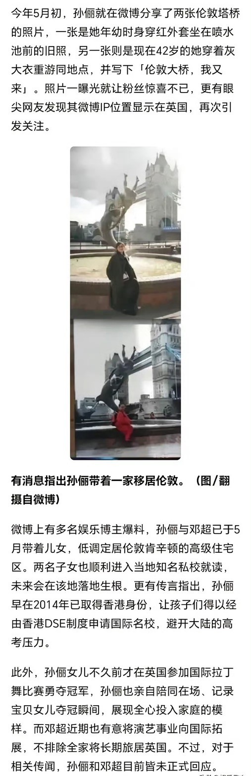 之前她和邓超曾带着孩子们去剑桥大学游学参观,去年一家人还去英国观看了温网比赛。这么一看,他们去英国的频率确实频繁了点,不怪网友多想。毕竟明星们平时那么忙,谁有空天天往国外跑呢?偏偏孙俪去的还都是同一个地方。