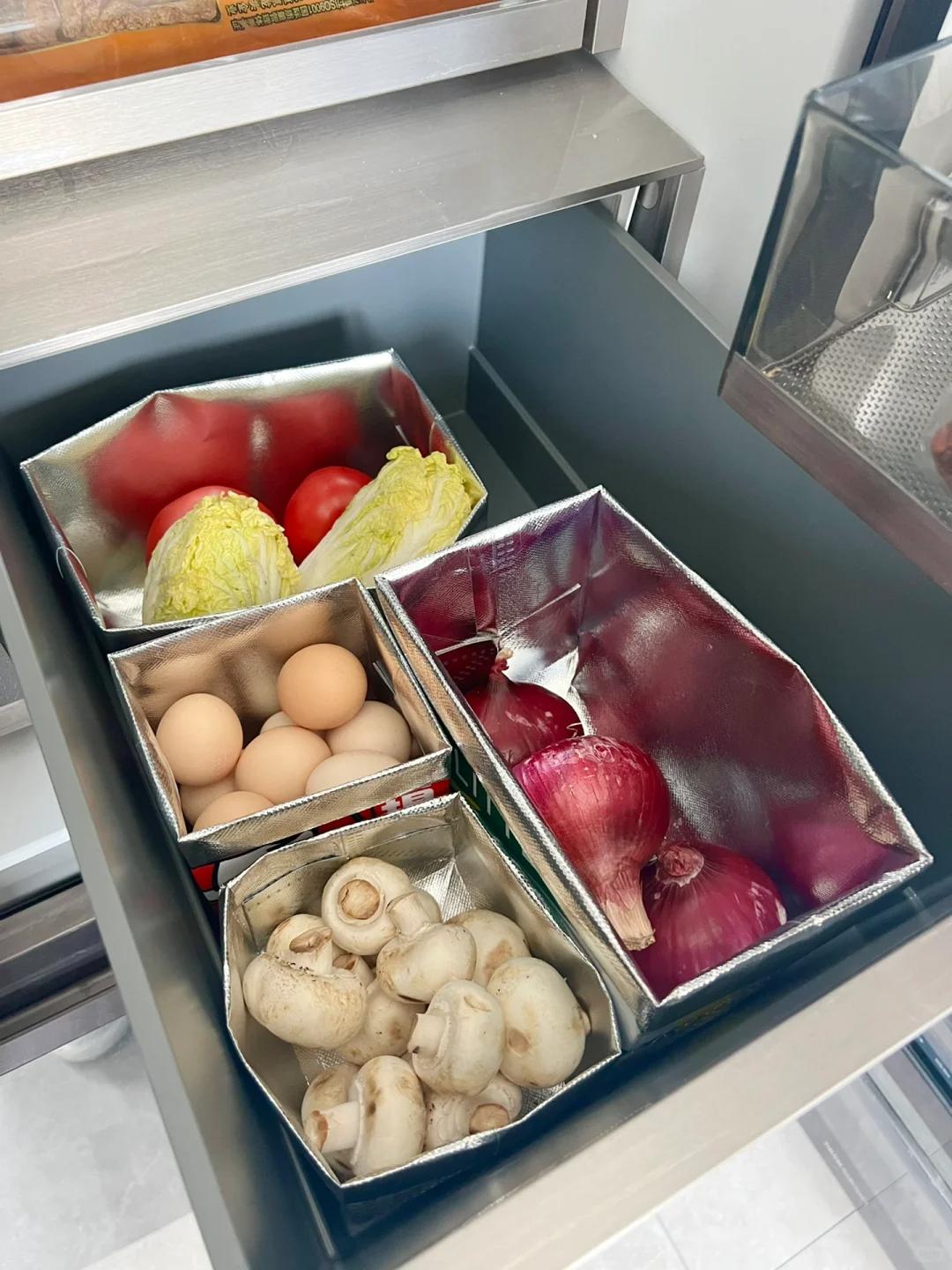 秒变冰箱收纳盒,可以灵活调节高度,放进冰箱正好严丝合缝。