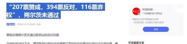 “207票赞成,394票反对,116票弃权”,朔尔茨未通过——环球时报