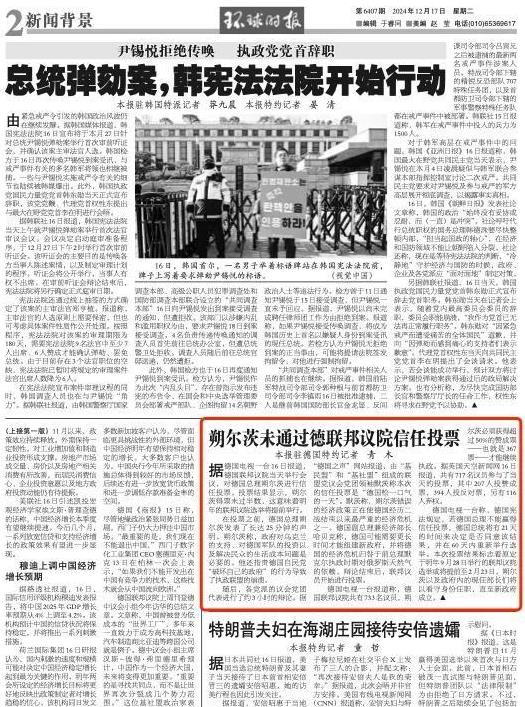 朔尔茨未通过德联邦议院信任投票——环球时报