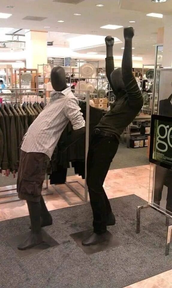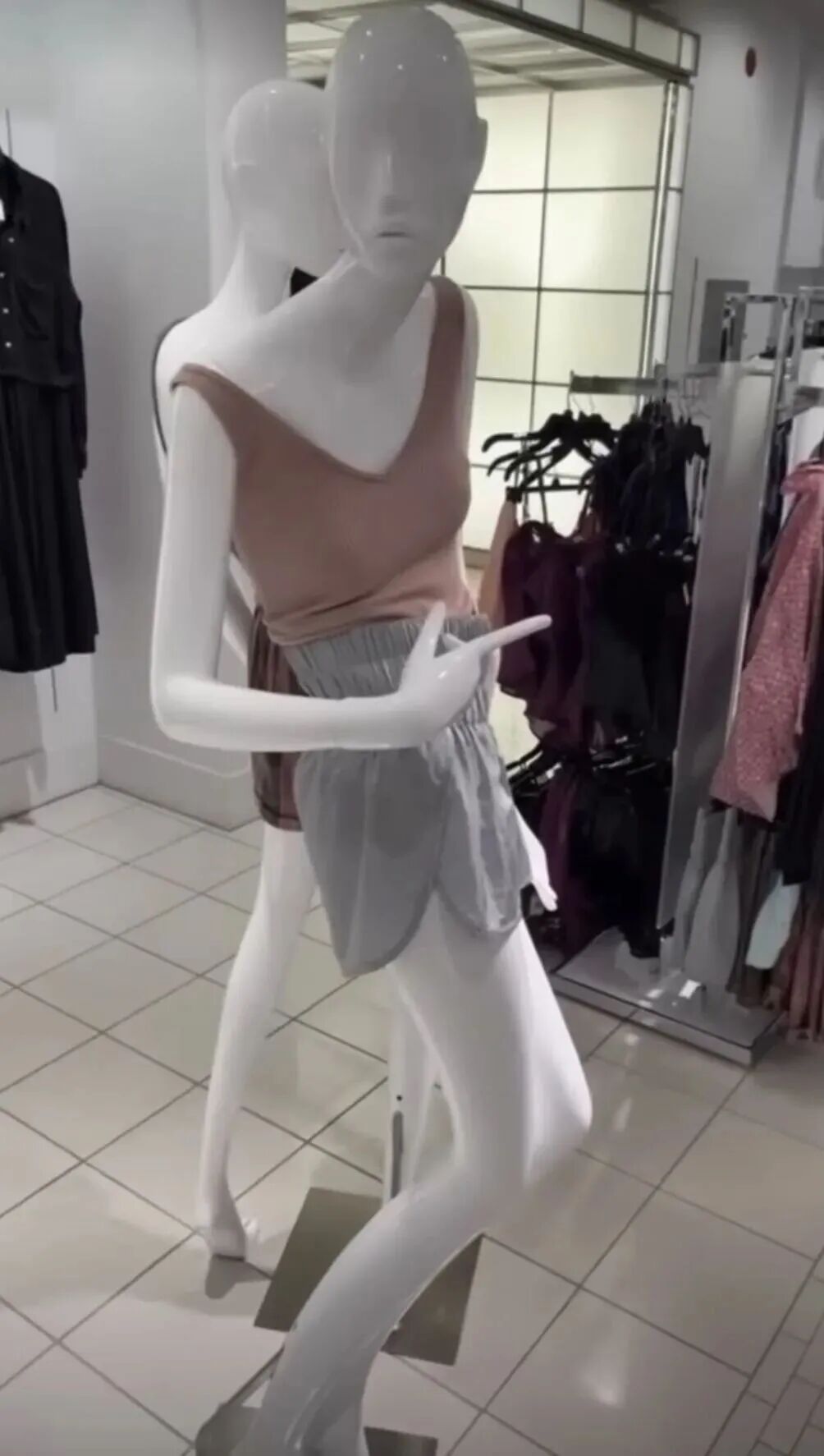 在服装行业,假人模特是不可或缺的,但是总有一些有趣的人,给它们摆了各种有趣的姿势,真的是笑不活了。1.看见这两个假人模特