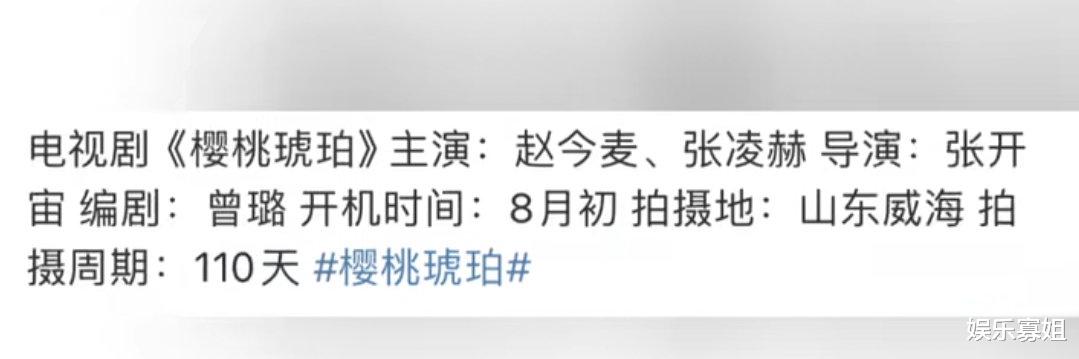 嗨!这里是娱乐寡姐,为你带来最新娱乐资讯。网传赵今麦、张凌赫主演的新剧《樱桃琥珀》,将于八月份开机,惹得CP粉狂喜!正午阳光触碰,张开宙执导,网友称两位是史上最快二搭。一搭古偶《度华年》还没播完,二搭现偶《樱桃琥珀》即将开机,这次二搭又会擦出怎样的火花呢,真的好期待哇!