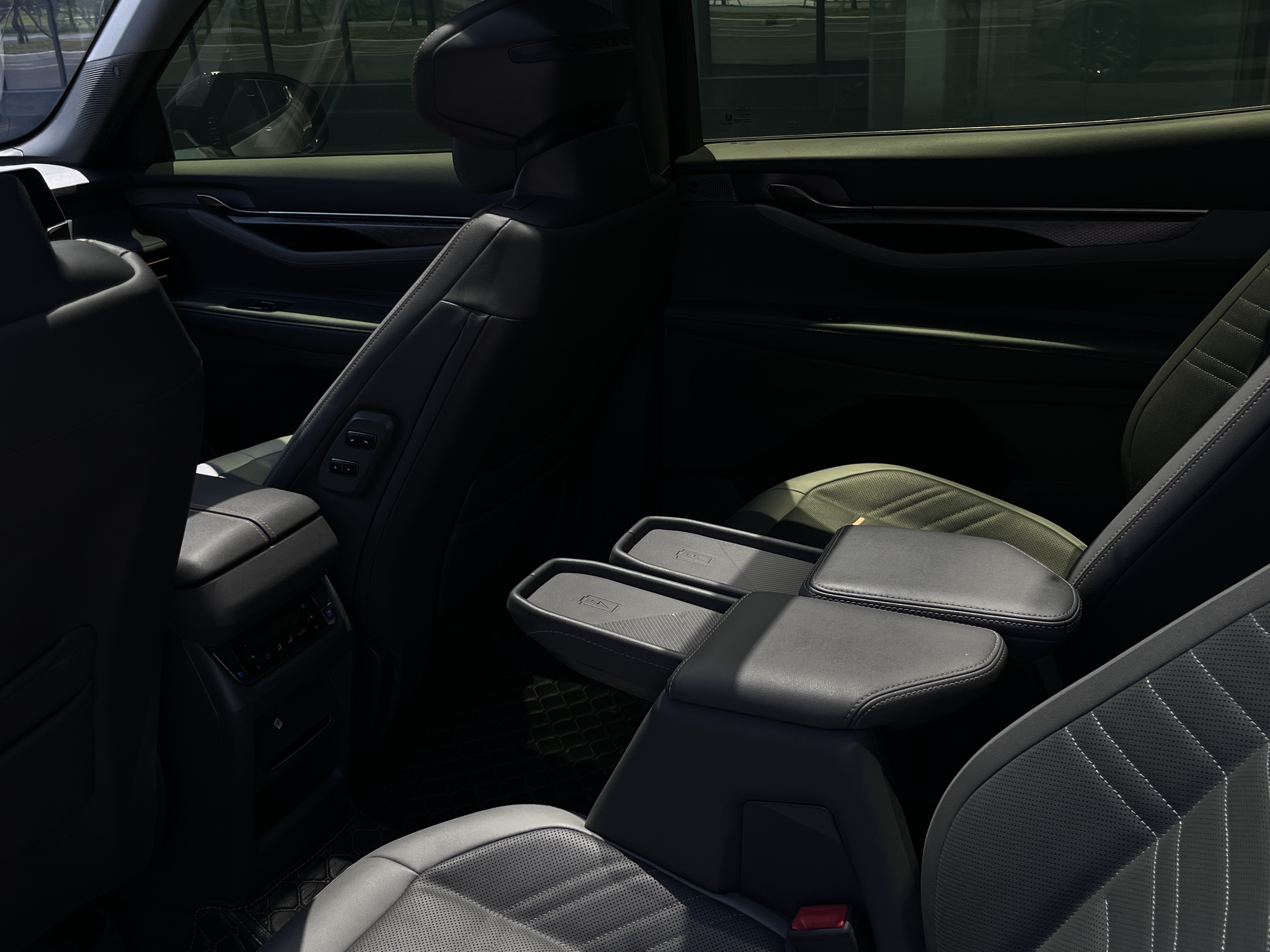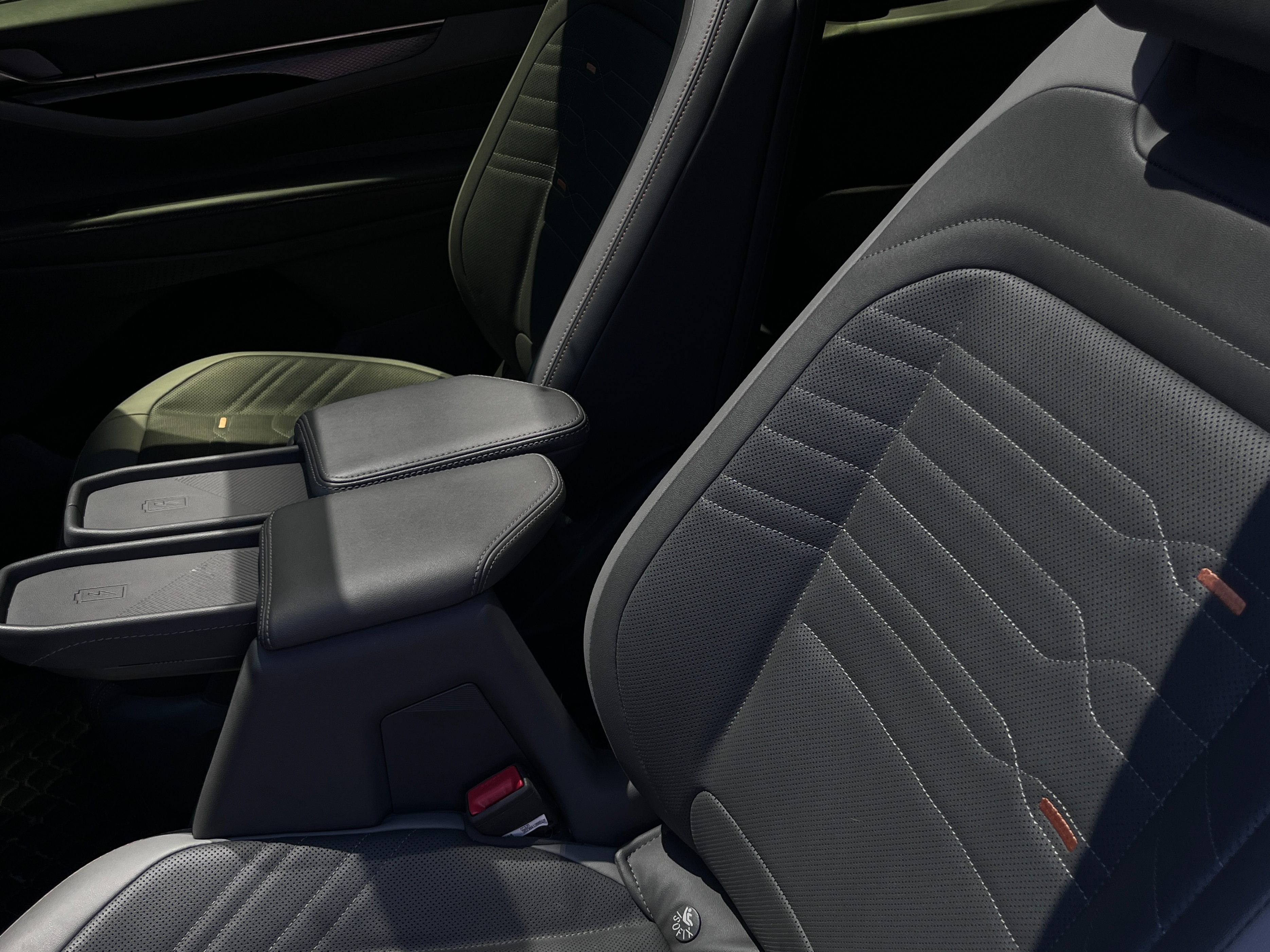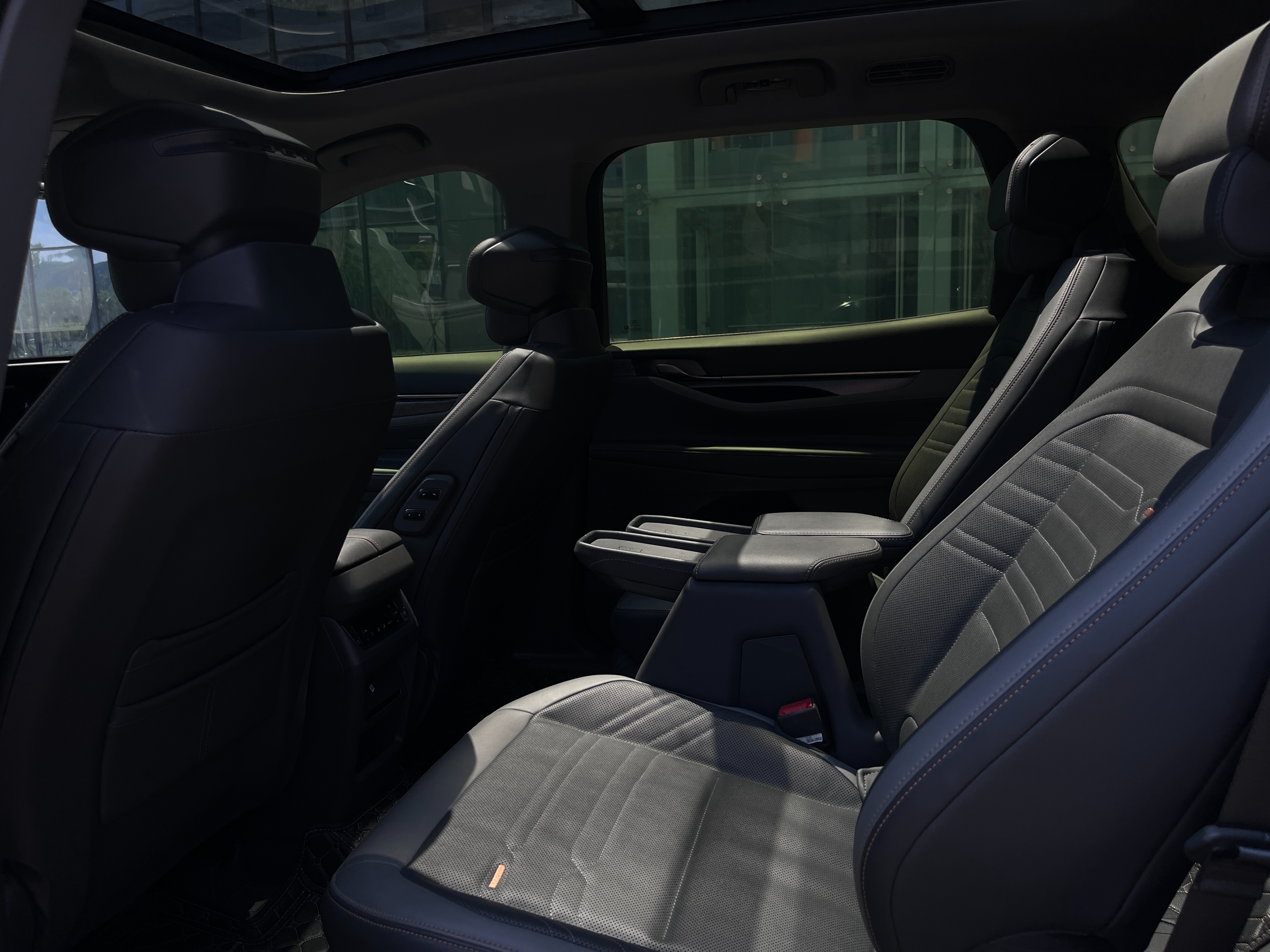 买了之后,才发现锐界L的好不止于表面。最让我满意的就是它的空间和座椅布局。我买的是223的座椅布局,第二排是两个独立的“头等舱座椅”,带扶手,通风加热,还能电动调节。我爸妈坐后面,简直是赞不绝口。支撑性很好,不像有些车软塌塌的坐久了腰疼。中间有个过道,进出第三排特别方便,不用吭哧吭哧地翻倒第二排座椅。我儿子最喜欢钻到第三排去,那是他的专属小天地。