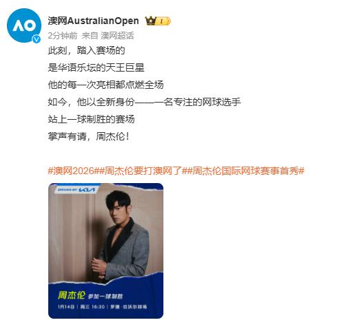面对这场万众瞩目的首秀,周杰伦保持着一贯的幽默谦逊。他在社交平台调侃称“大家不用特地赶过来”,还自嘲大概率“连球都碰不到就出局”,轻松的表态既化解了竞技的紧张感,也让网友更添期待。澳网官方也对他的参赛充满期待,发文盛赞:“此刻,踏入赛场的是华语乐坛的天王巨星,他的每一次亮相都点燃全场,如今,他以全新身份——一名专注的网球选手,站上一球制胜的赛场”,字里行间满是认可。
