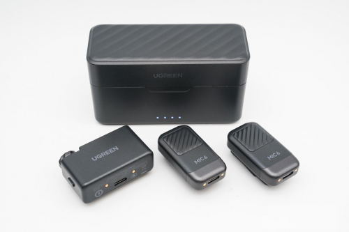发射器33.2克、接收器29.3克,方块造型搭配弹力背夹,夹持稳固但久戴有坠感,轻薄衣领易被拉扯变形。收发端均带OLED屏,电量、信号等参数清晰可见,4级增益调节与模式切换按键操作直观,开机2秒自动配对,新手易上手。但无充电盒设计,外出需单独收纳设备与线材,配件易丢失;且格式化需收发端联动操作,步骤略繁琐。