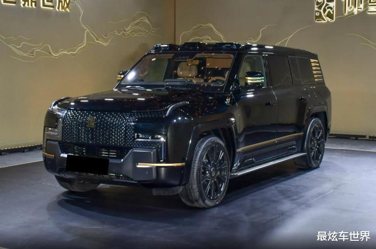 先从体量上来看,全新的仰望U8L鼎世版有点像是路虎揽胜的创世加长版,其整体风格强调“轴距加长”后带来的雍容华贵气质,前脸采用“鼎”式设计,左右两侧配备点阵式菱形光源,前包围区域配有黑色装饰,整体效果大气舒展。不同于揽胜的是,新车在细节装饰上更讨好用户群体,前后车标均采用24K黄金打造,参考小米SU7 Ultra的“金标”设计,彰显了产品与众不同的身份。尺寸是新车富有辨识度的地方,经过加长升级后,车长达到5米4,车宽近2米05,车高超1米92,轴距达到3米25。