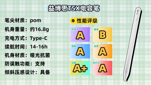 这款电容笔外观设计简约大方,笔杆粗细适中,整体的握持感舒适,而且单支笔的重量大约就14g,手感很轻盈,长时间使用也不容易造成手腕疲劳。书写体验上,它采用POM材质的笔尖,落笔顺滑,即使写小字也比较清晰精准,延迟和断触现象不明显。续航方面,它支持Type-C充电,满电可以提供13小时的续航,基本可以满足一整天的学习或创作。不过需要注意的是,静置五分钟不操作就会自动关机,虽然有助于节省电量,但有时可能打断书写的连贯性。