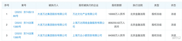 与此同时,天眼查显示,大连万达集团股份有限公司(以下简称万达集团)新增三则股权冻结信息,冻结股权数额合计超94亿元,冻结期限三年,执行法院同样为北京金融法院。
