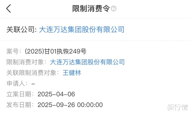 此前,据天眼查信息显示,大连万达集团及其法定代表人王健林因一起标的1.86亿元的强制执行案件,被采取限制高消费措施。同时,大连万达集团与万达地产集团已因该案被列入被执行人名单。