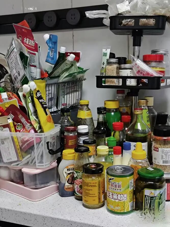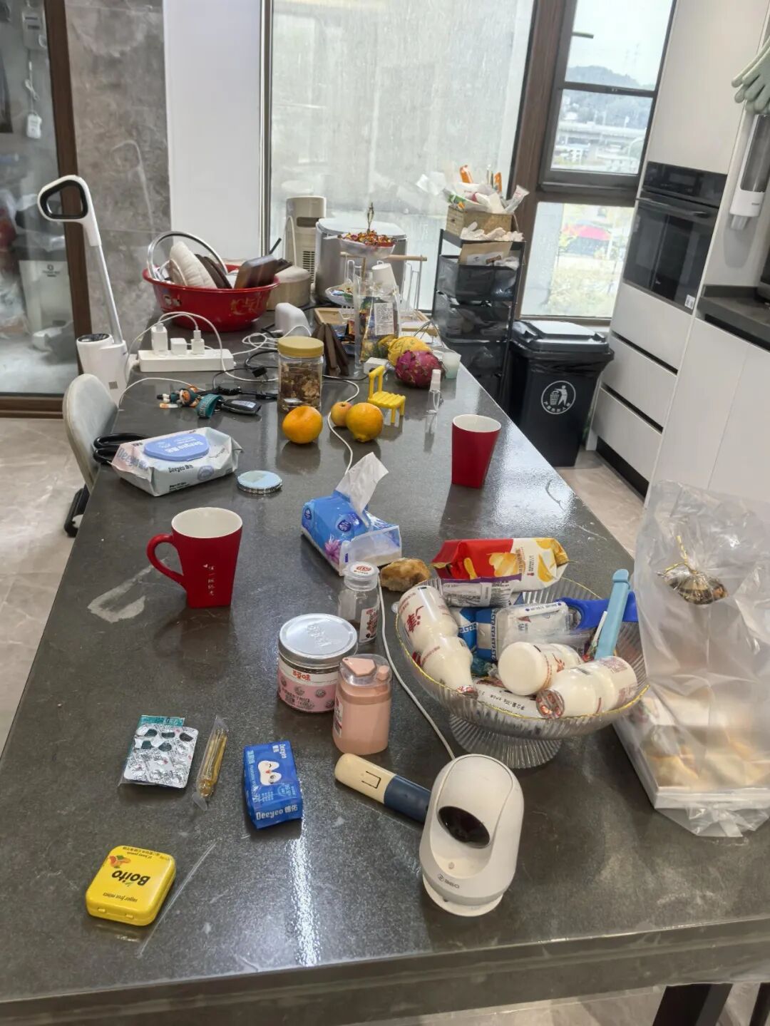 厨房和茶几是家里的杂物重灾区,不管多大的厨房台面,总能被堆得满满当当,几乎就没有个空的地方,切个菜都得先挪开一堆东西。