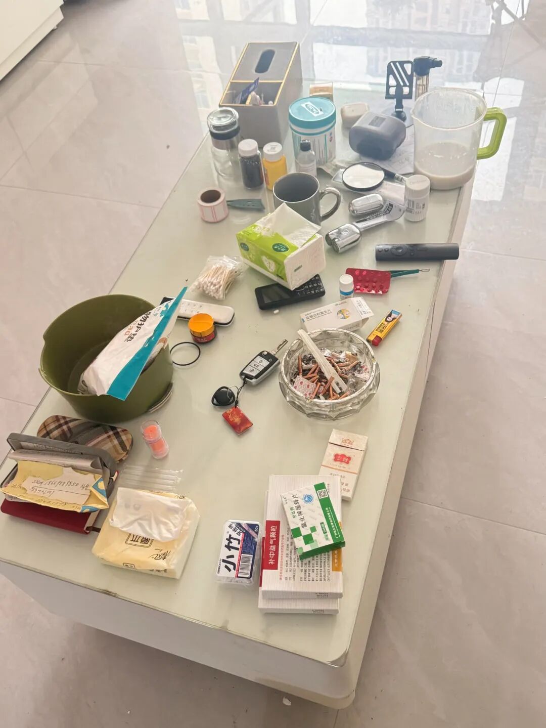 客厅茶几上的遥控器纸巾盒,棉签、药品、钥匙,杂七杂八啥的,堆得就像个杂货摊。