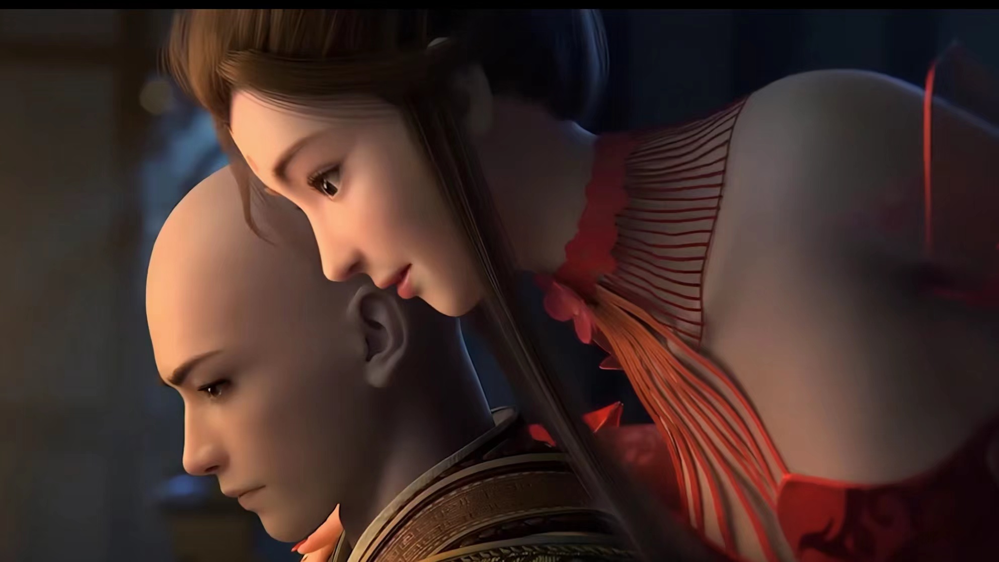 于此一道,我没有太多经验,不知道下一步该怎么做,只是双手无助地攀上他圣洁不可侵犯的脸庞,低头亲吻他尚未点上戒疤的光洁头颅。