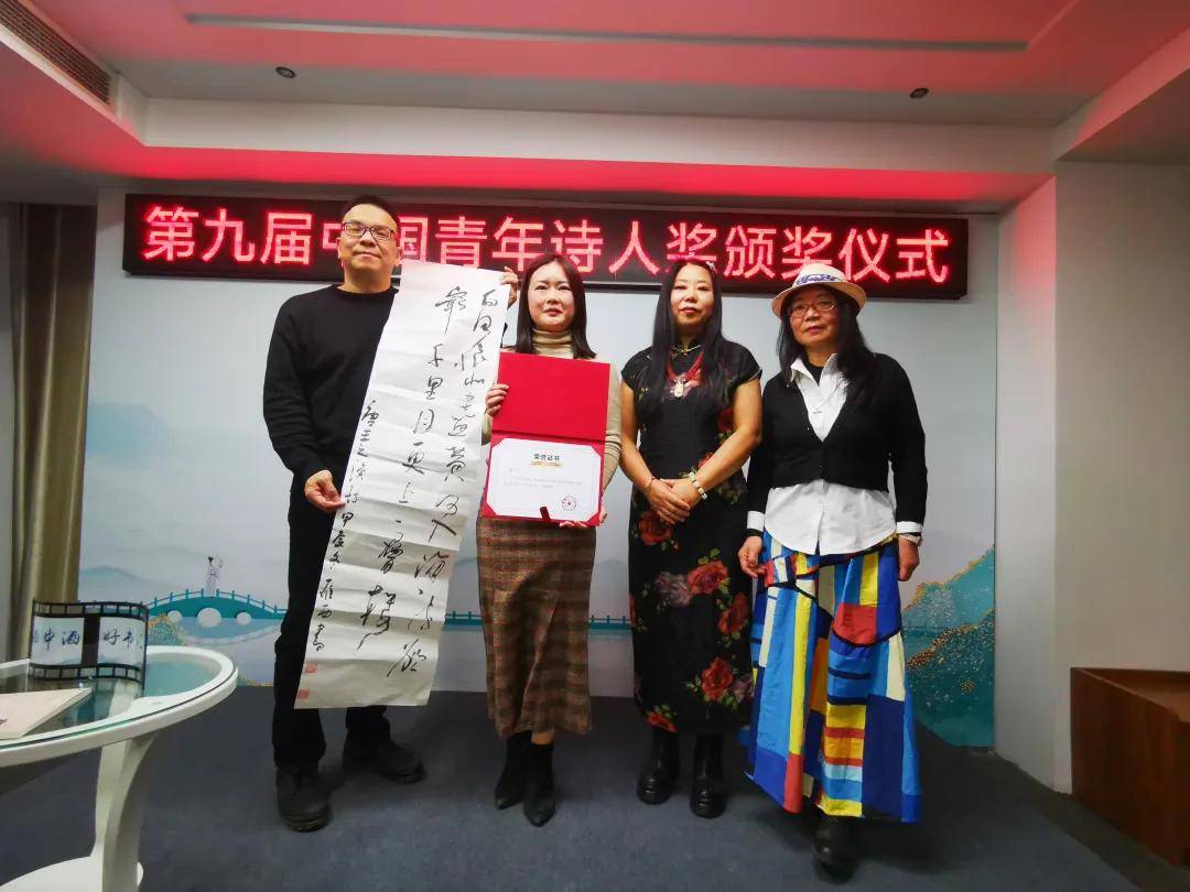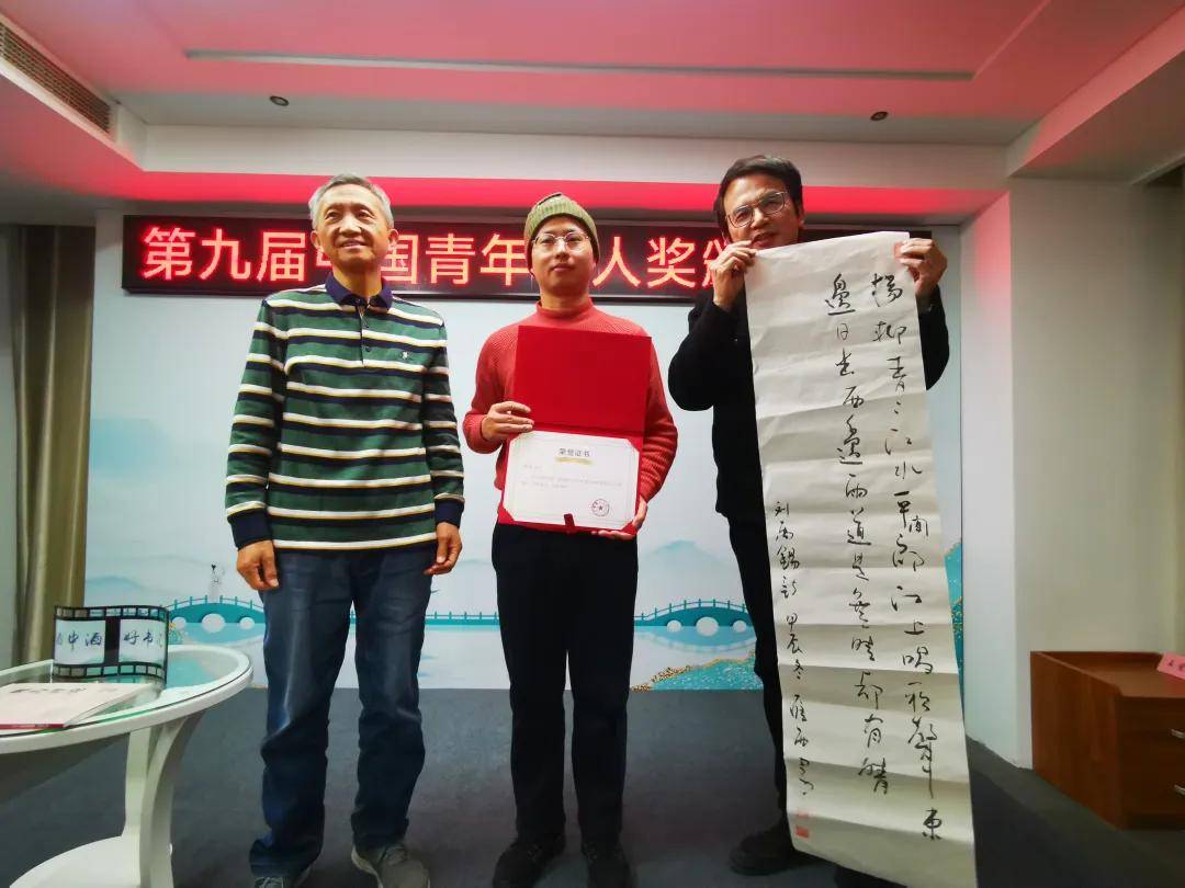 马丽教授、胡少卿教授、安琪女士、王德领教授、北遥先生、花语女士、黄华教授、宗德宏先生、杨胜国先生分别给第九届中国青年诗人新锐奖获得者一梅、肖扬、苏瑾颁奖。范丹花、一梅、肖扬三位到场的获奖诗人现场发表获奖感言,他们共同表示很荣幸获得第九届中国青年诗人奖,这个奖项将对他们今后的创作带来持续的激励与推动作用,由此真诚感谢评委会与组委会的付出。