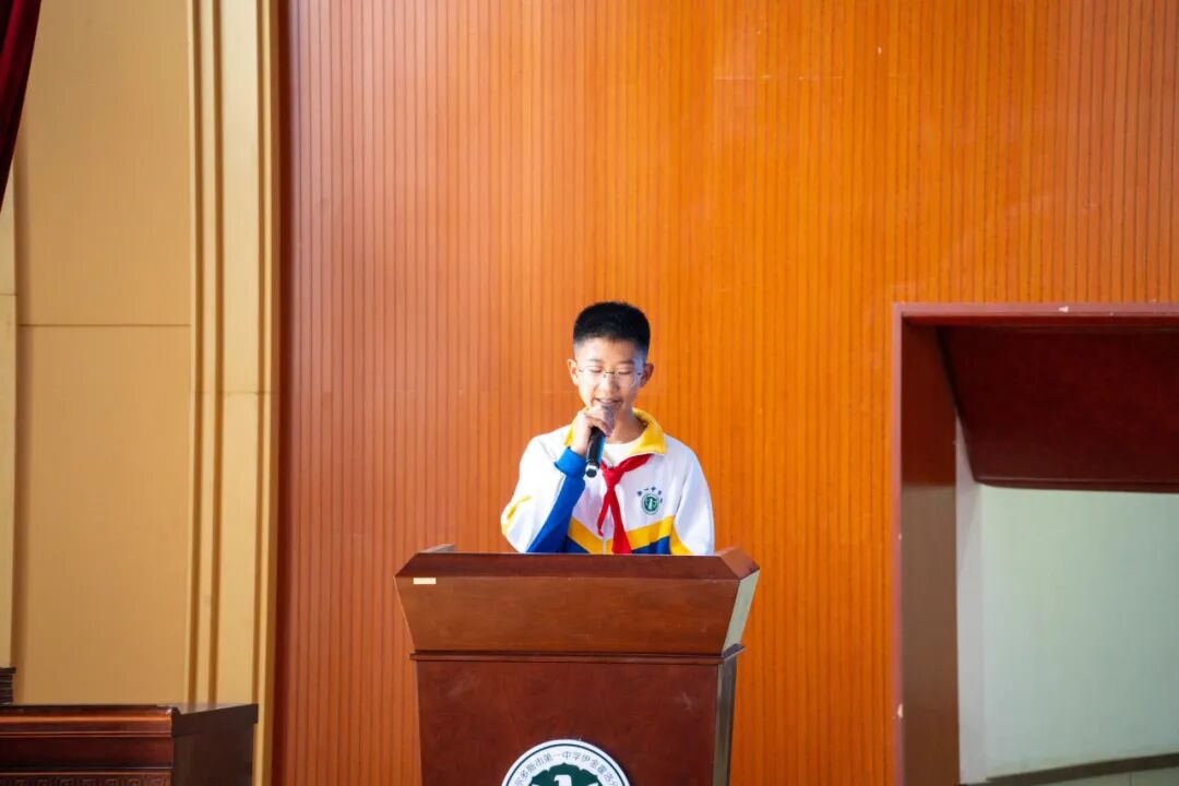 来自111班的李雨航同学作为少先队员代表发言,表达了全体少先队员的自豪与决心。随后,他带领全体少先队员重温入队誓词:“我热爱中国共产党,热爱祖国,热爱人民,好好学习,好好锻炼,准备着:为共产主义事业贡献力量!”铮铮誓言掷地有声,汇聚起新时代少年为实现强国梦想不懈奋斗的信念与力量。