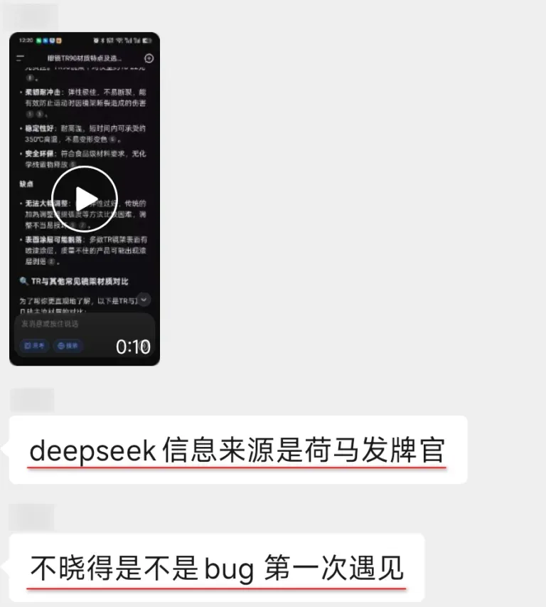 为了进一步说明这不是我们@Lena老师的账号问题,船长也同样问了我的DeepSeek:“眼镜tr是什么材质?”