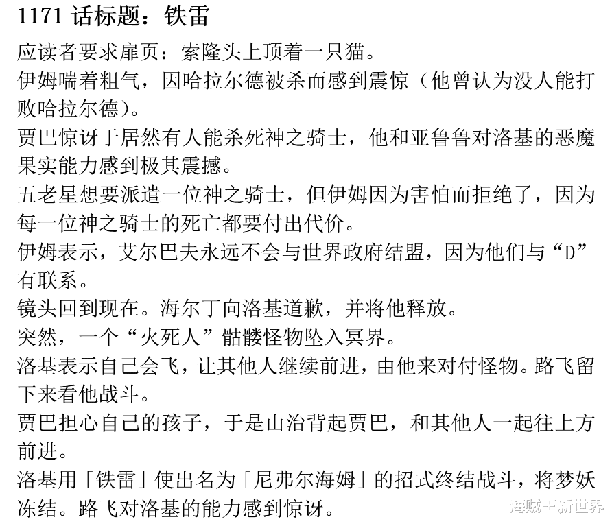 文字情报,剧透慎点!#海贼王#点评:能力越强必然需要承担风险神骑拥有不死而且还强化实力本身想打破这个契约相当难但本话还没