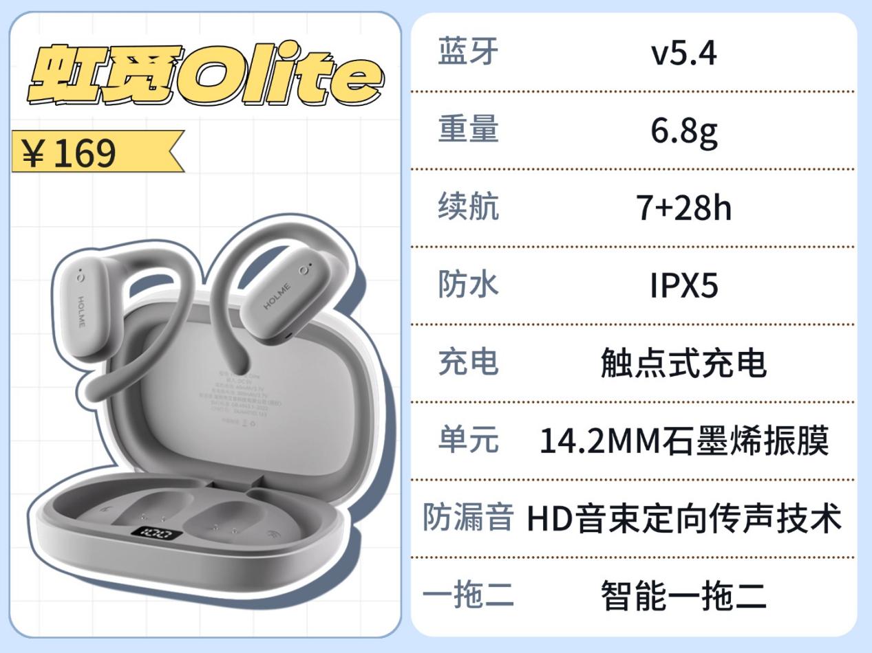 要是你们正在挑高性价比耳机,这款直接放进备选清单完全没问题,整体表现相当均衡。它不仅有石墨烯振膜加持,还搭载了虹觅自研的高保真调音,音质输出特别稳。尤其是人声还原这块,细腻又自然,长时间听歌也不会觉得累。另外它还带了定向传音技术,声音能精准传到耳道里,既把漏音控制得很到位,听感也更通透,在图书馆、办公室用都不用担心打扰别人。还有个贴心小细节,它配备了音乐、游戏、运动三种专属模式,日常不管是沉浸式听歌、低延迟打游戏,还是大汗淋漓的运动场景,都能一键适配,用起来省心又顺手。设计上它采用了工学弧面造型,刚好能贴合耳廓,戴起来又稳又舒服。