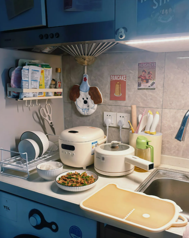 租房生活虽然有很多限制,但干净整洁的厨房可以带来家的温暖和归属感。